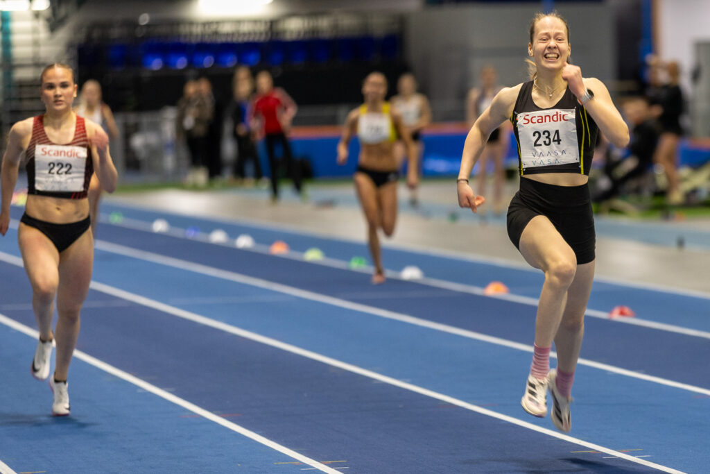 Noormarkun Nopsan Aada-Olivia Oksanen ja IF Drottin Priscilla Boateng olivat 22-vuotiaiden 60 metrillä toinen ja kolmas ennätyksillään 7,52 ja 7,57.