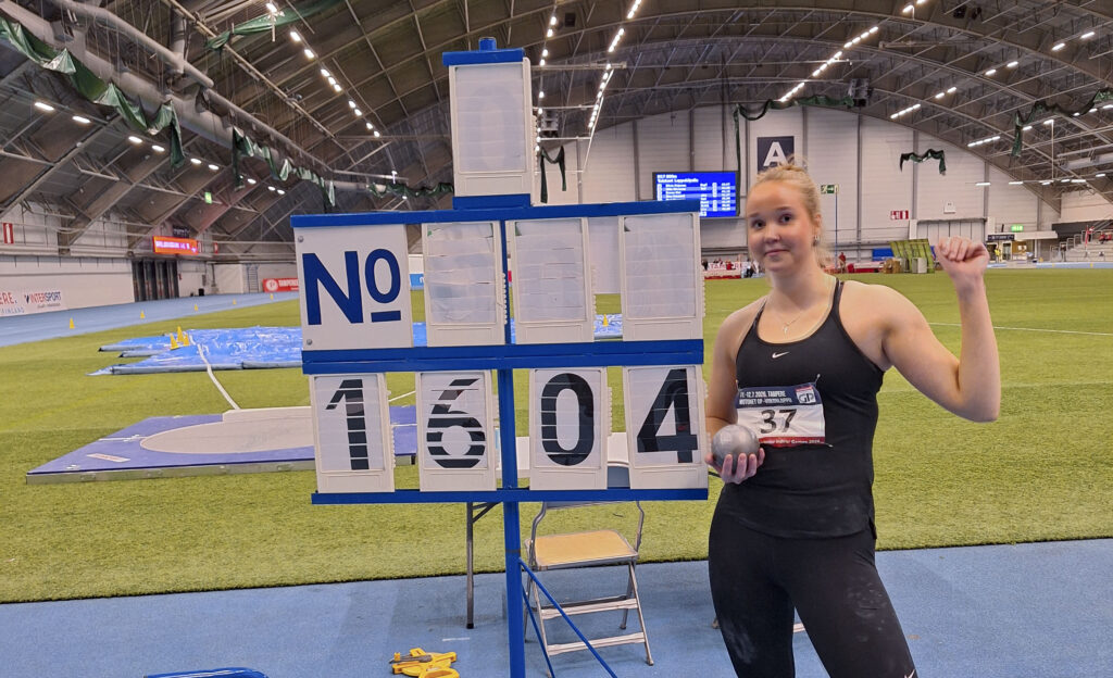 17-vuotiaiden tyttöjen kuulantyöntö päättyi juoksupyrähdykseen ja riemukkaaseen tunteenpurkaukseen. Emma Valkila voitti kilpailun ennätyksellään 16,04 Tampere Junior Indoor Gamesin ensimmäisenä päivänä Pirkkahallissa. Tulos syntyi viimeisellä eli kuudennella kierroksella. Tulos 16,04 on […]
