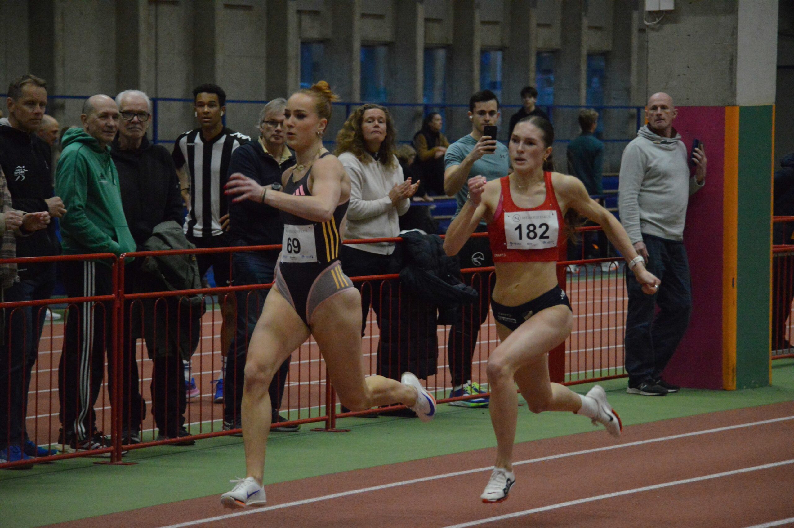 Helsingin IFK:n Mila Heikkonen pyyhälsi toiseksi halliennätyksellään 24,22, joka on viisi sadasosasekuntia nopeampi kuin hänen ulkorataennätyksensä. Tainio ja Heikkonen kamppailivat vierekkäin kahdella ulommaisella radalla. Tainio on juossut tänä talvena juuri Liikuntamyllyssä ennätyksekseen 23,93.