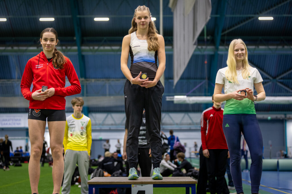 Botniahallissa hopealle juoksi HIFK:n Venla Engström ja pronssia Kirkkonummen Urheilijoiden Hanna Kotakallio ajoin 10.11,75 ja 10.15,64.