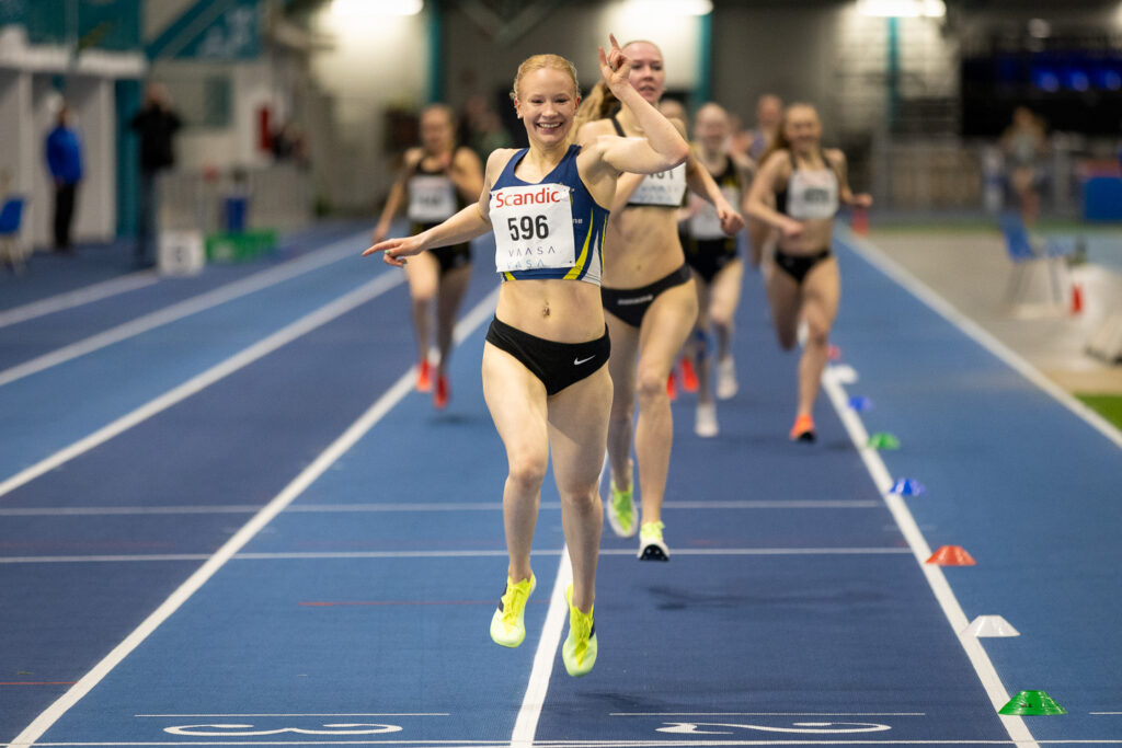Rauman Urheilijoiden Aleksi Ahlfors otti M19-sarjan 3000 metrin mestaruuden helposti ennätyksellään 8.12,98 nuorten SM-halleissa Mustasaaren Botniahallissa.
