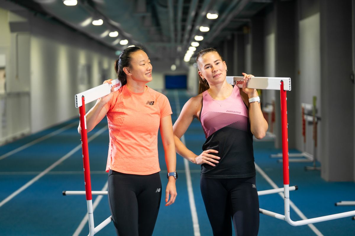 Tasaisen asetelman voisi kuvitella luovan harjoituksiin jatkuvan kilpailutilanteen, mutta sellaista ei Urhean juoksusuoralla näy. Aitajuoksutreenissä mennään lujaa, mutta iloisen rennossa ilmapiirissä. Kaksikon harjoittelua voi seurata Instagramissa Aitalyylit-nimen alla.