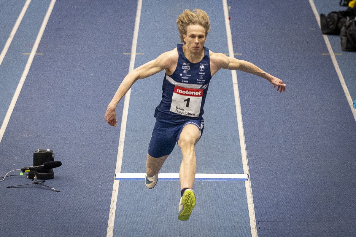 Aaro Davidila Lapin Lukosta uusi miesten kolmiloikan hallimestaruutensa toisen kierroksen tuloksellaan 15,87. Davidila ponnisti myös kilpailun toiseksi pisimmän hypyn 15,72.