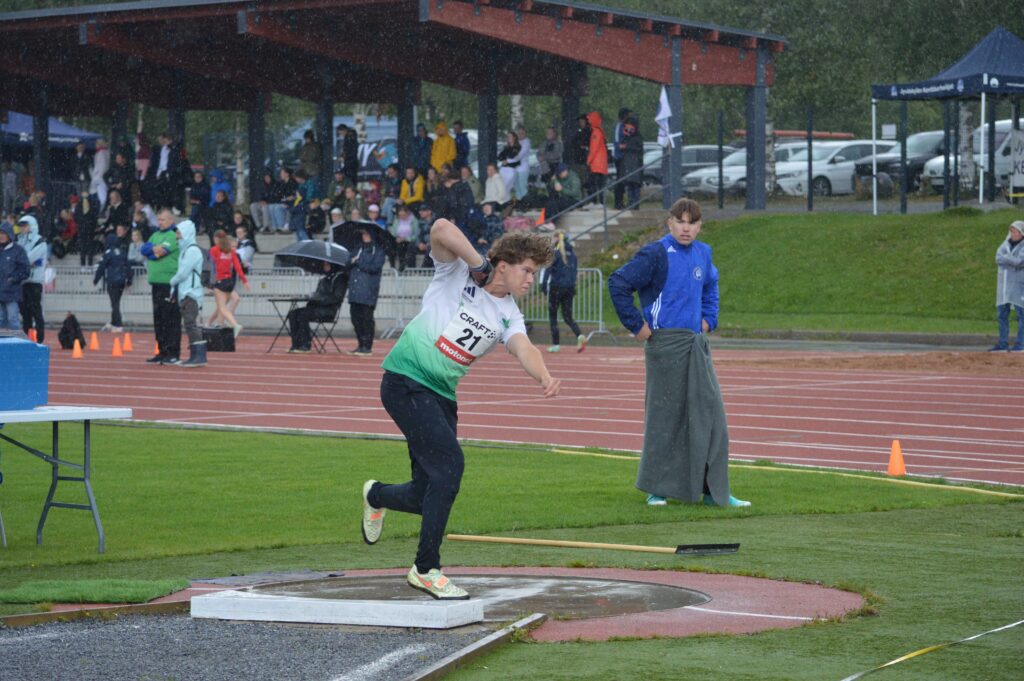 Keski-Uudenmaan Yleisurheilun Leevi Kaipiainen voitti lauantaina 14-vuotiaiden poikien kuulantyönnön ja keihäänheiton tuloksin 13,82 ja 54,11. Keihästä heitettiin navakkaan vastatuuleen.