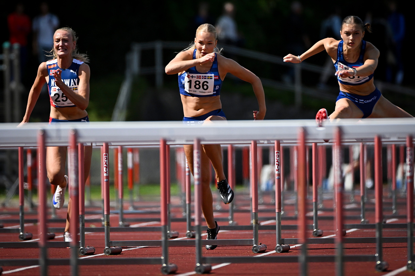 19-vuotiaiden Suomen ennätysnainen Mila Heikkonen oli naisten 100 metrin aitajuoksun paras ajalla 13,33. Norjan Selma Ims aitoi hopealle ajalla 13,60 ja Siiri Siirtola pronsille vain yhden sadasosan norjalaiselle hävinneenä. Heikkonen oli tyytyväinen uransa kolmanneksi nopeimpaan aikaan.