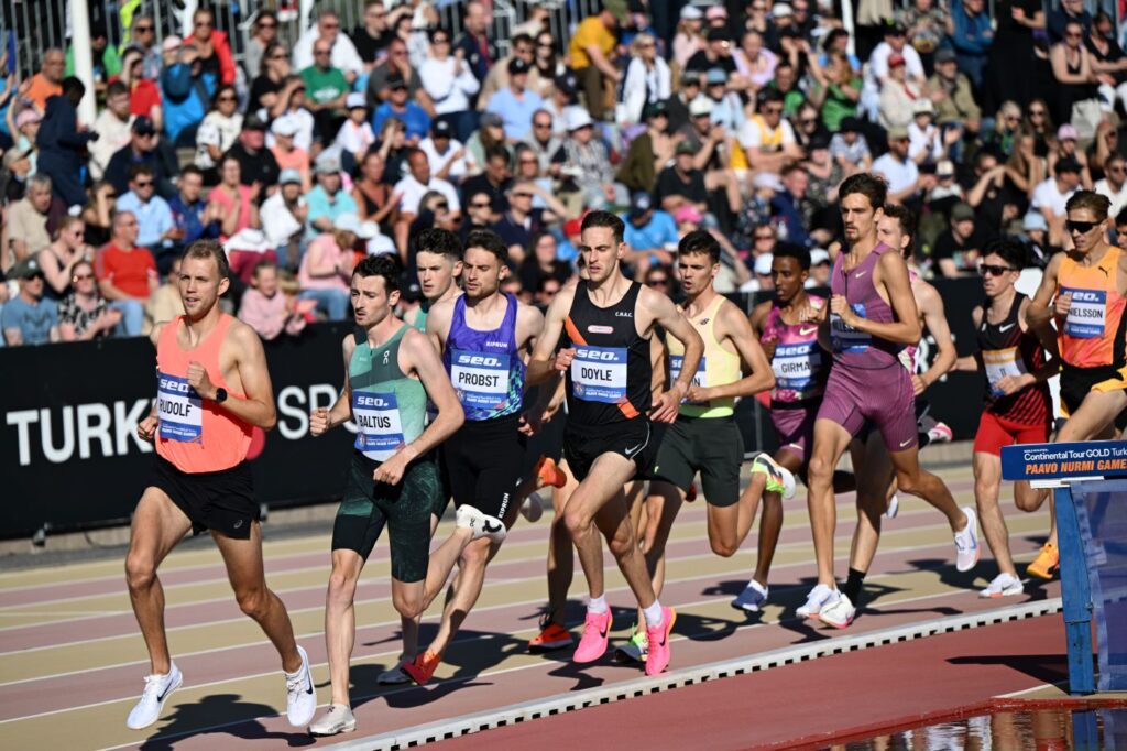 Artikkelikuva (DecaBild): Ammattijänis Zan Rudolf vetää 1500 metrin joukkoa Paavo Nurmi Gamesissa kesällä 2024. Siinä juoksussa Joonas Rinne teki uudet SE-lukemat 3.35,20.