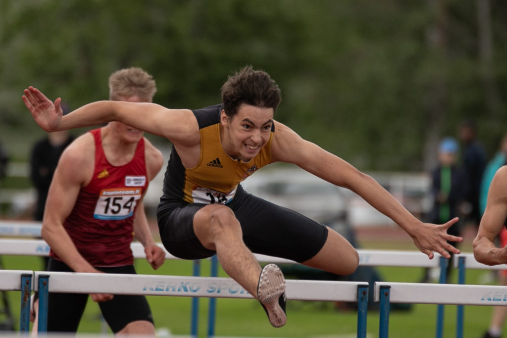 Miehissä 19-vuotiaissa voiton vei molemmissa juoksuissa Lahden Ahkeran Karim Echadid, joka aitoi kummassakin 14,38.