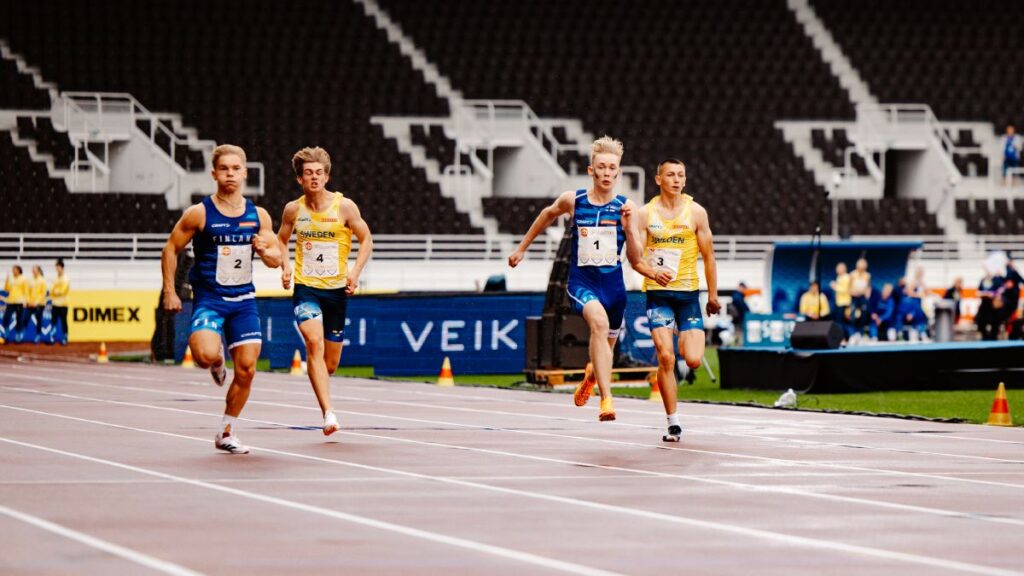 Keltapaidat olivat vahvempia myös poikien viestissä. Ruotsin voittoaika oli hyvä 40,98. Suomen nelikko Tomi Mäkitalo, Noel Nikulainen, Perttu Aakko ja Axel Nisula sai ajakseen 41,65.