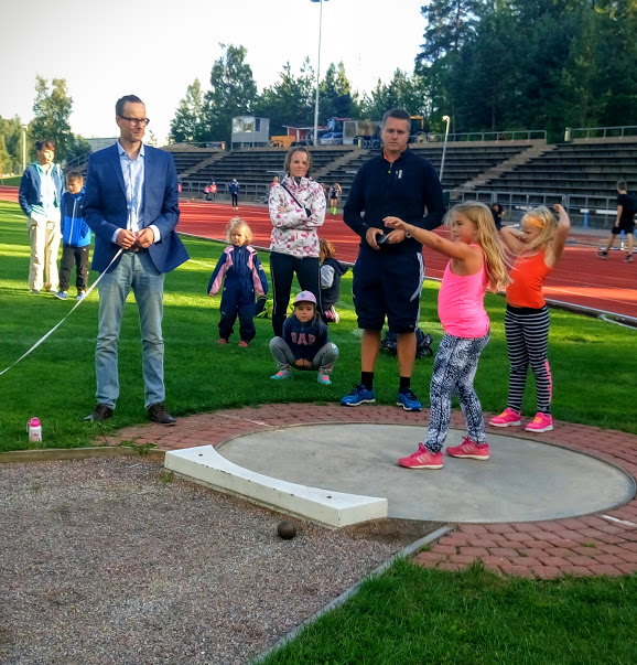 Hänen vanhimmat lapsensa ovat osallistuneet kesän aikana kerran viikossa järjestettyyn Salamien yleisurheilukouluun, jossa harjoiteltiin juuri ennen illan kisoja mm. kilpakävelyä.