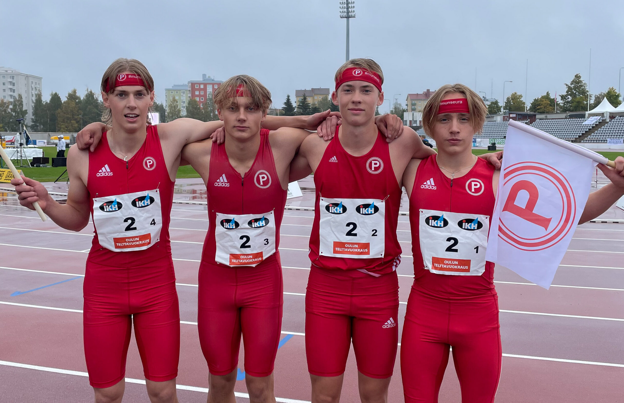 Ankkuri Väliharju ja aloittaja Nurminen juoksivat myös Pyrinnön viimevuotisessa mestarijoukkueessa, joka tuolloin Karhulassa aitoi Suomen ennätyksen 56,35.
