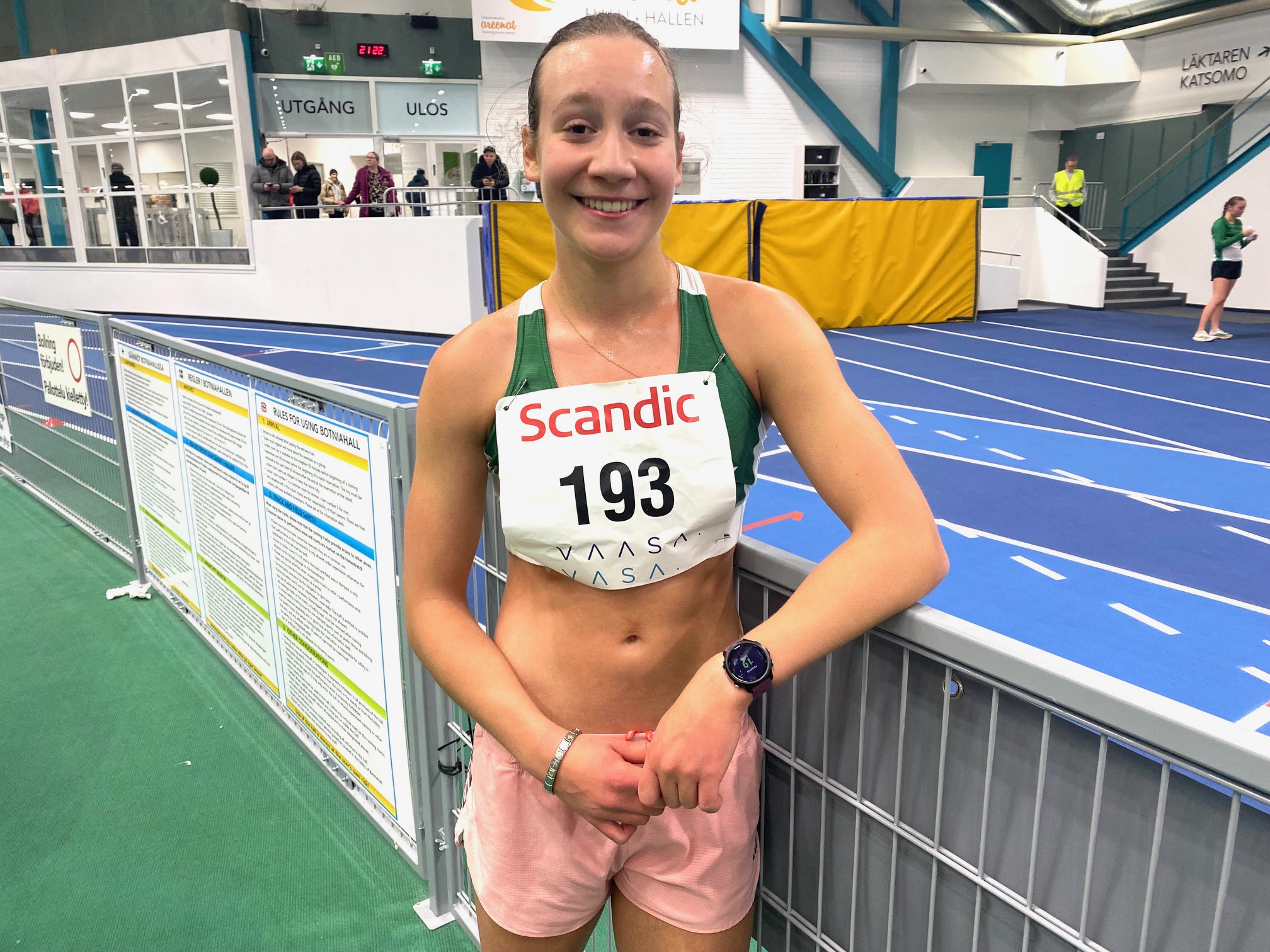 – No kyllä varmaan nämä 60 metrin aidat ja pituus. Tänne otin mukaan myös 60 metriä sen takia, kun valitsin korkeuden ja pituuden välillä. Ja sitten otin mukaan pituuden, Launonen selvitti nuorten kisojen lajivalintaansa.
