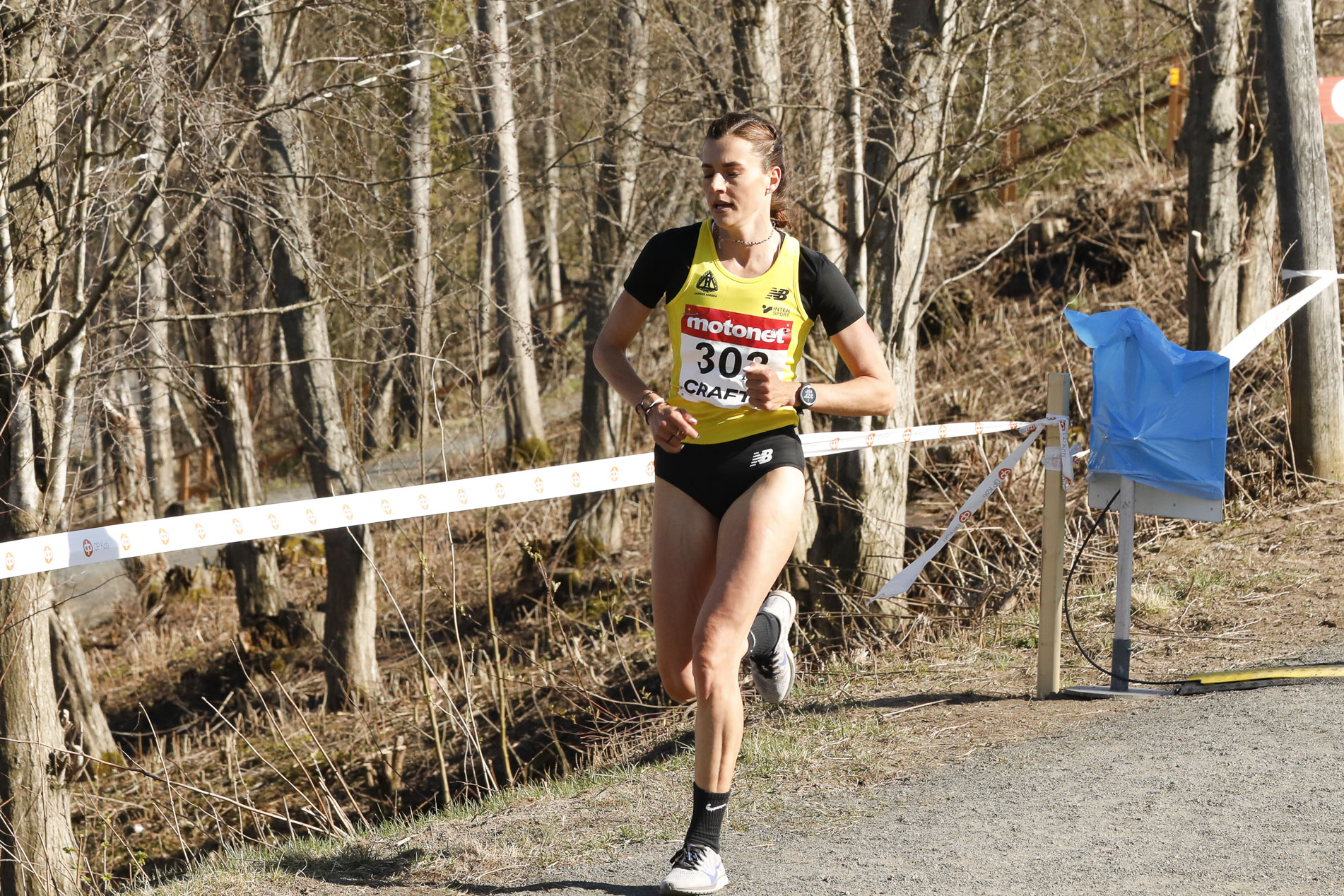 IK Falkenin Nathalie Blomqvist on Helanderin tapaan elämänsä kevätkunnossa. Blomqvist kukisti vaivatta kovalla vauhdinpidolla Lahden Ahkeran Kristiina Mäen.