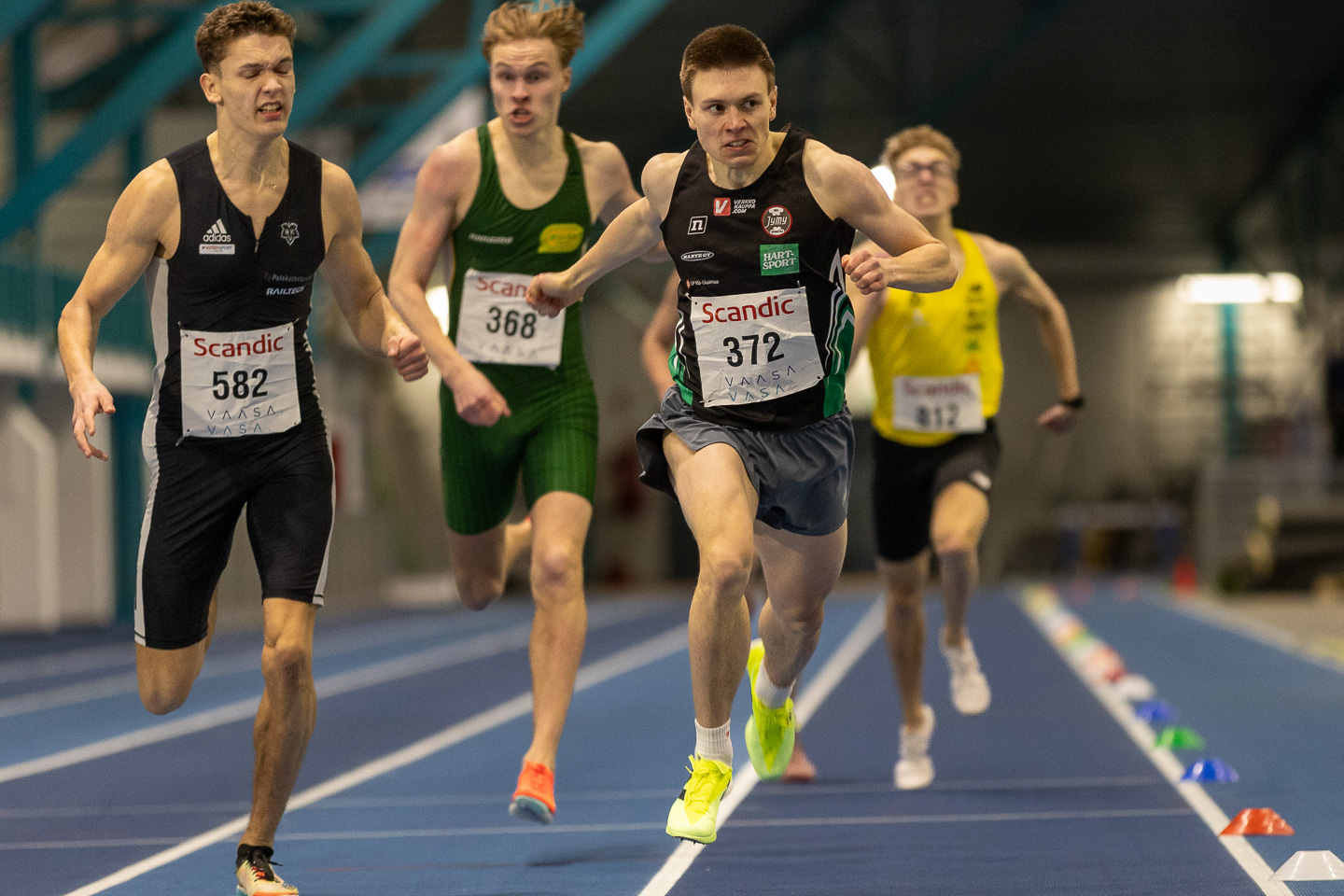 800 m: 1) Justus Korvenpää KU-58 1.52,54 (kaikkien aikojen 5:s ylipitkällä halliradalla), 2) Lauri Mononen SavonlRi 1.53,52, 3) Aleksi Ahlfors RaumU 1.53,62, 4) Aapo Mäkiniemi LimNM 1.54,35, 5) Jerry Vilenius HKV 1.55,68, 6) Kaarlo Strandström SibboV 1.56,73.