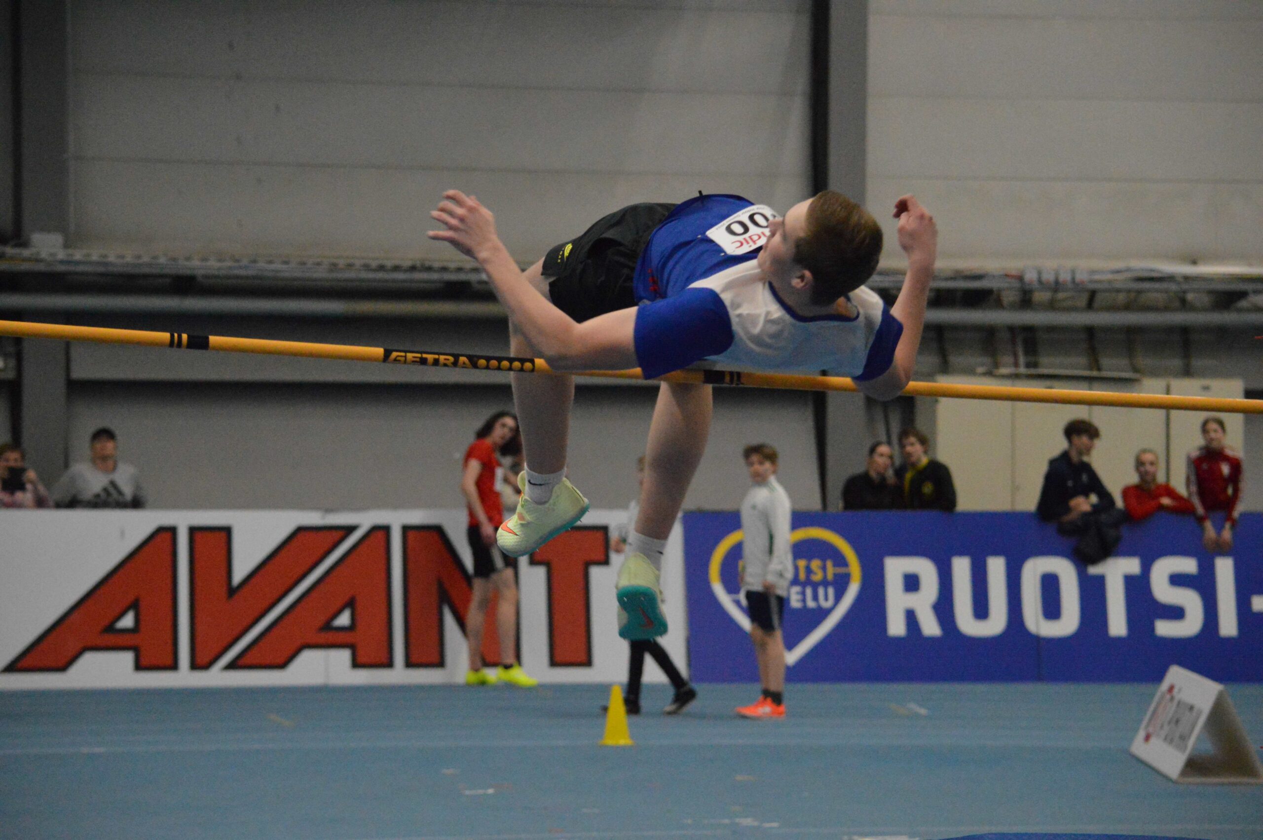 Jyväskylän Kenttäurheilijoiden Lauri Sinkkonen varmisti 17-vuotiaiden poikien korkeushypyn voiton tuloksella 188. Sen jälkeen hän nostatti riman suoraan tasan kahteen metriin. Sen ylitys ei vielä tällä kertaa onnistunut, mutta joka tapauksessa tulostaulussa lukema 200 näytti komealta. Sinkkosen ennätys on 195.
