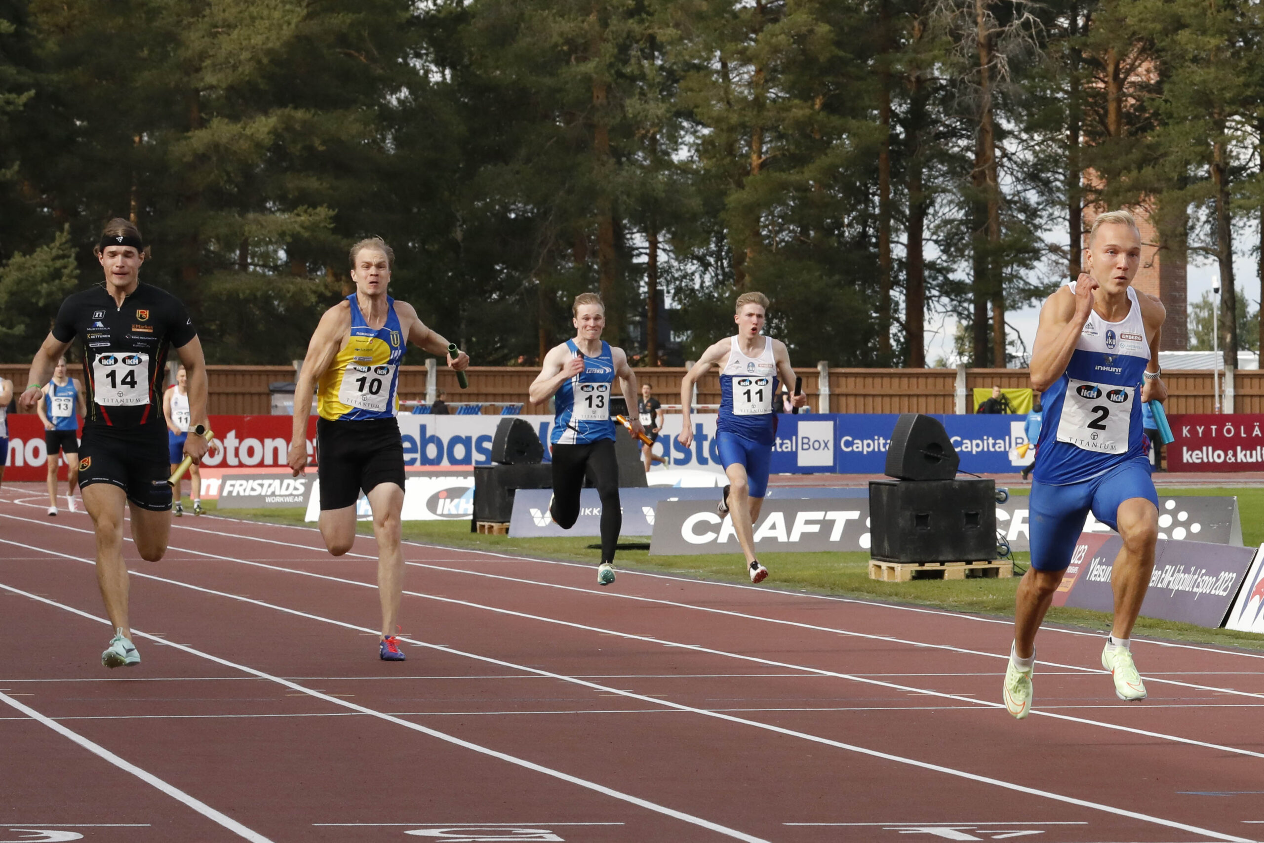 Miesten viestin JKU voitti kauden kärkiajalla 40,37 ja joukkueella Santeri Kuusiniemi, Arttu Peltola, Ilari Manninen ja Viljami Kaasalainen. Peltola suoriutui mainiosti takasuoran osuudesta, jossa hän paikkasi sairastumisen takia poisjäänyttä Elmo Lakkaa.