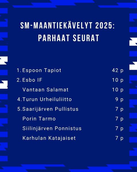 Esbo IF:n Jonathan Ekberg oli Saarijärvellä toinen kauden parhaallaan 1.27.41. Ekbergin viime vuonna kävelemä ennätys on 1.27.20.