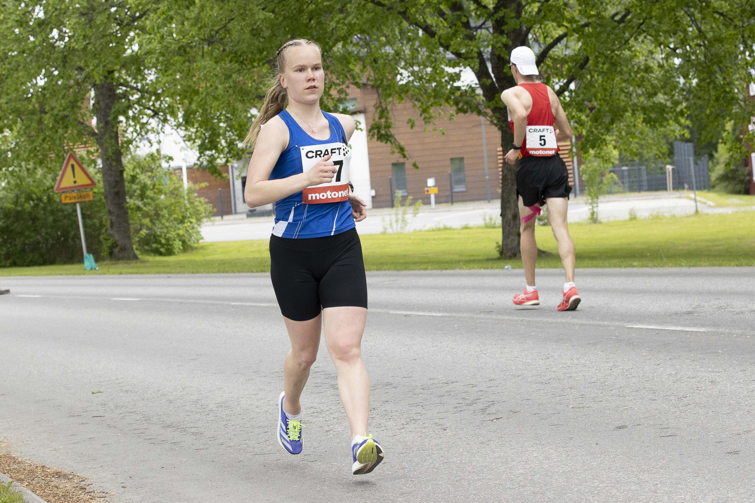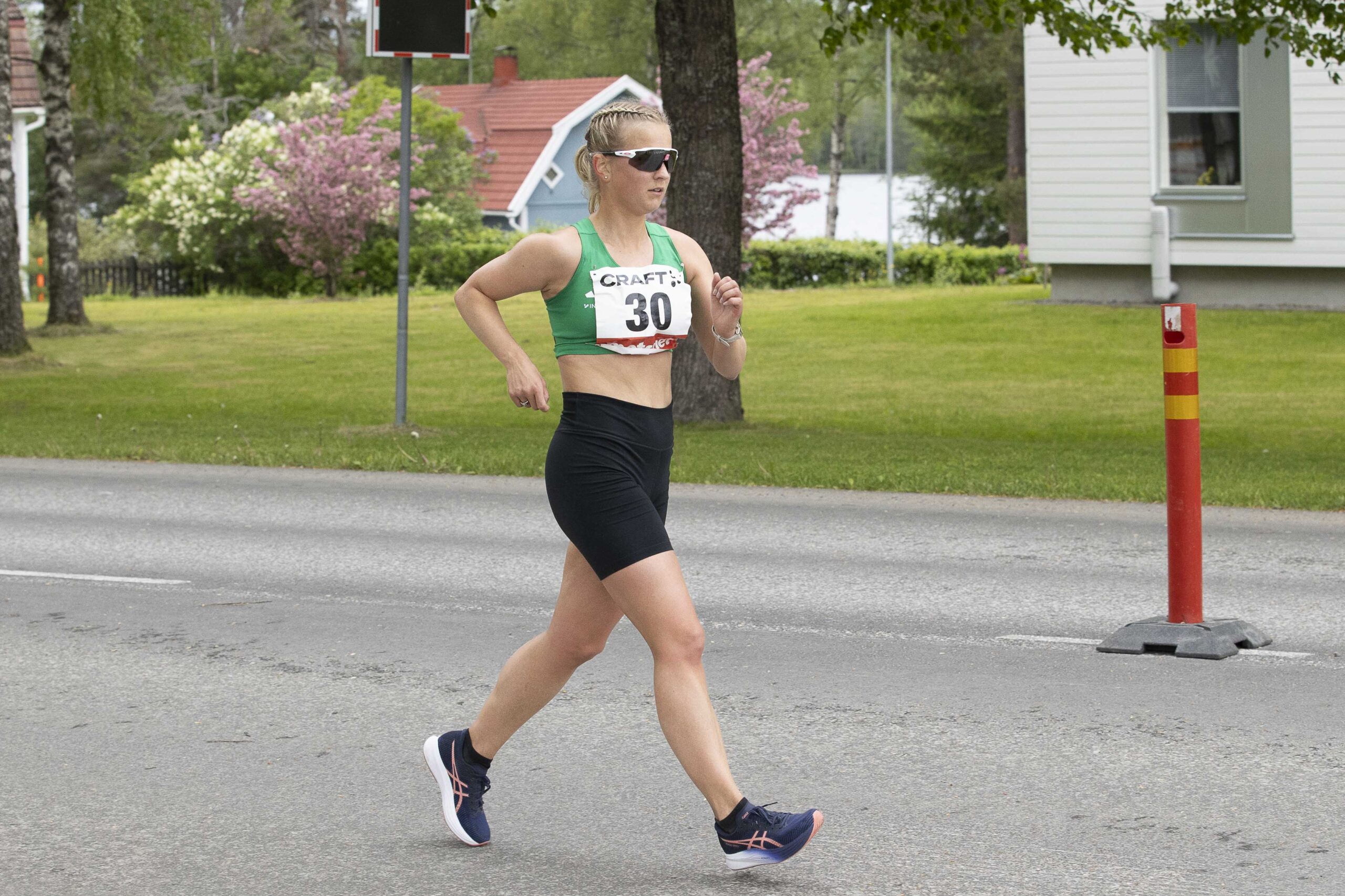Espoon Tapioiden Enni Nurmi käveli koleahkossa ja tuulisessa säässä naisten 20 kilometrin mestariksi jo kolmatta kertaa urallaan. Nyt ajalla 1.39.39.