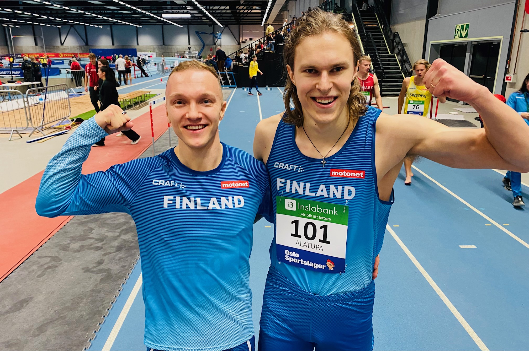 Aapo Karvinen ja Iikka Alingue kimmahtelivat kolmiloikkakilpailussa komeasti hopeaa ja pronssia tuloksin 15,65 ja 15,28. Alingué ponnisti kauden parhaansa. Voiton vei Ruotsin Gabriel Wallmark, joka loikki 15,90.
