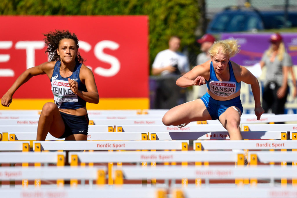 Janette Hanski kokosi seitsenottelun avauspäivänä 3101 pistettä ja on 17:s. Hän juoksi 100 metrin aidat 14,70, ylitti korkeushypyssä 157, työnsi kuulaa 12,92 ja juoksi 200 metrillä ennätyksensä 26,01.
