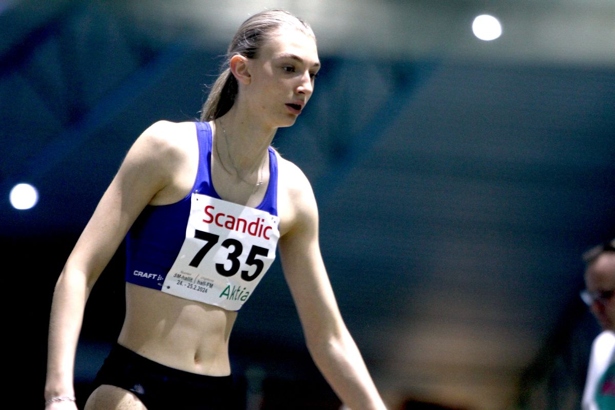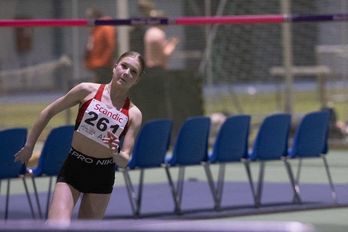 Viikontakainen naisten seiväshypyn Suomen mestari Silja Andersson aloitti Botniahallissa nuorten SM-kilpailuissa vasta, kun muut kilpailijat olivat jo hyppynsä hypänneet.