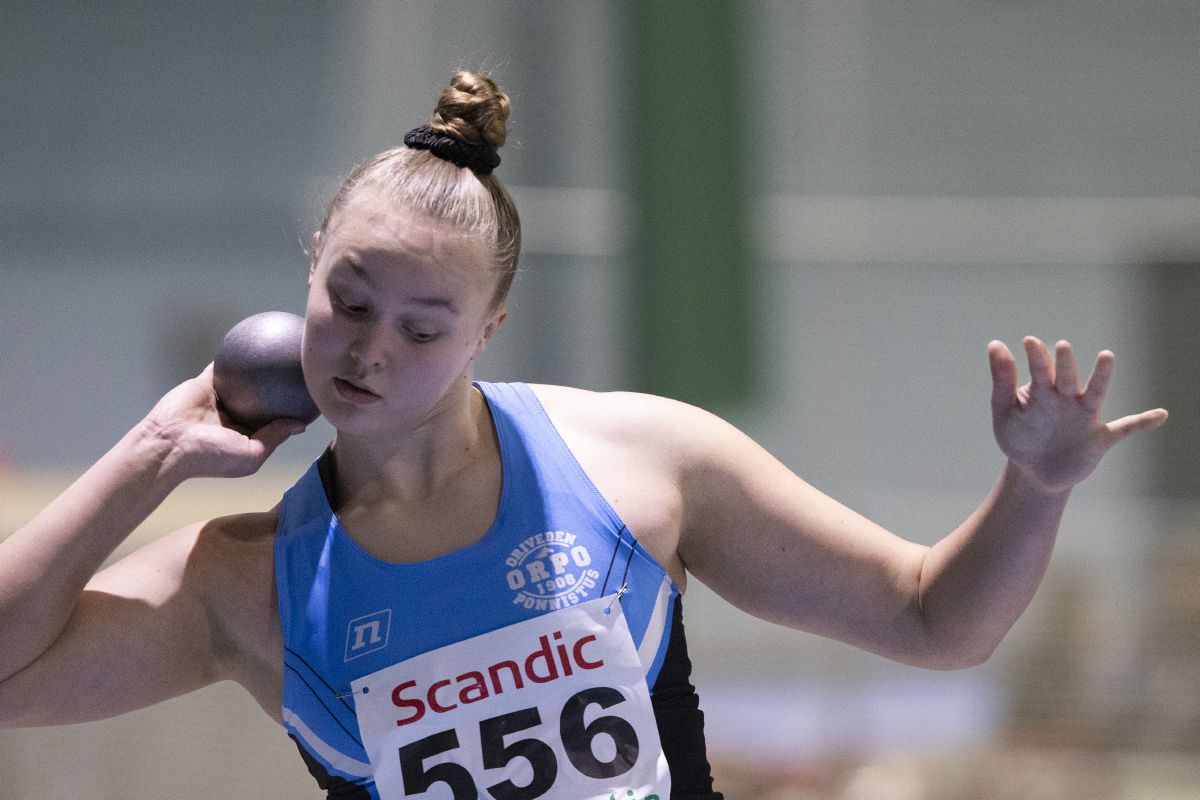 Oona Viljanen Oriveden Ponnistuksesta voitti 22-vuotiaiden naisten kuulantyönnön uudella ennätyksellään 14,43. Entinen ennätys koheni 29 senttiä.