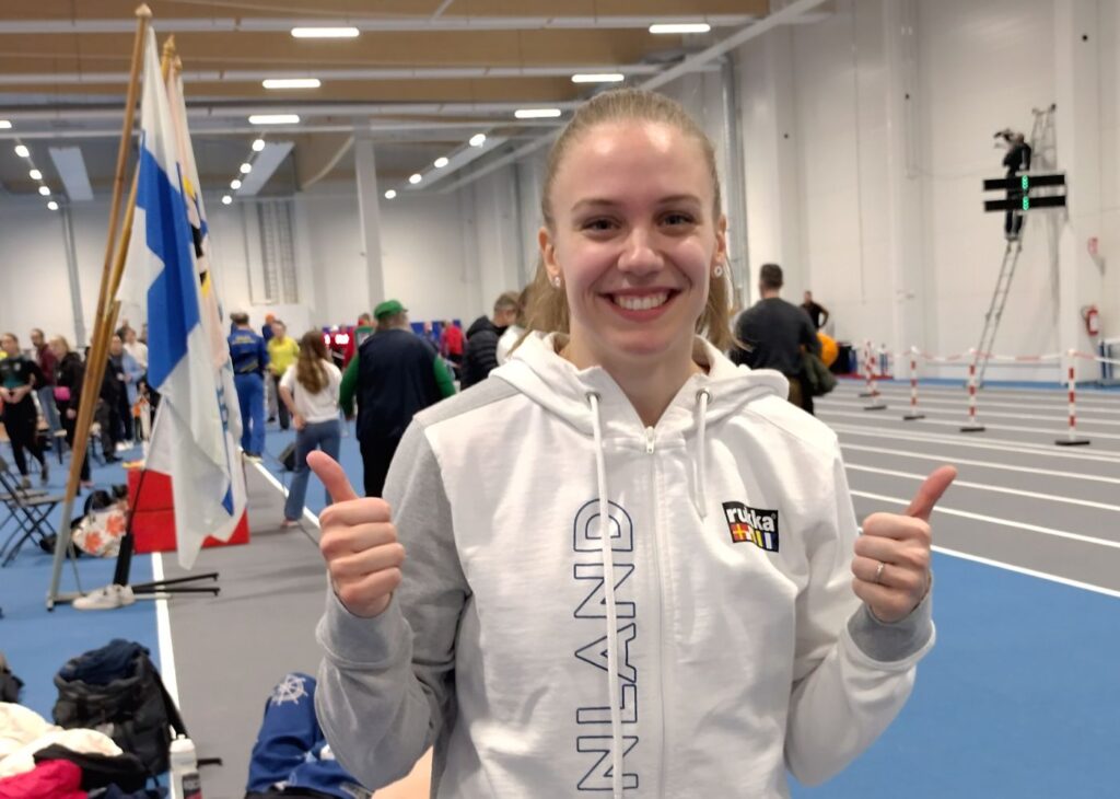 Lotta Kemppinen oli oikein tyytyväinen ensimmäiseen kilpailuunsa uudella Kerava-Sipoo Energia Areenalla. Hän otti voiton hallin avajaiskisojen 60 metrin finaalissa ajalla 7,19 ja jäi vain kolme sekunnin sadasosaan hänen omissa nimissään olevasta SE-tuloksesta 7,16.