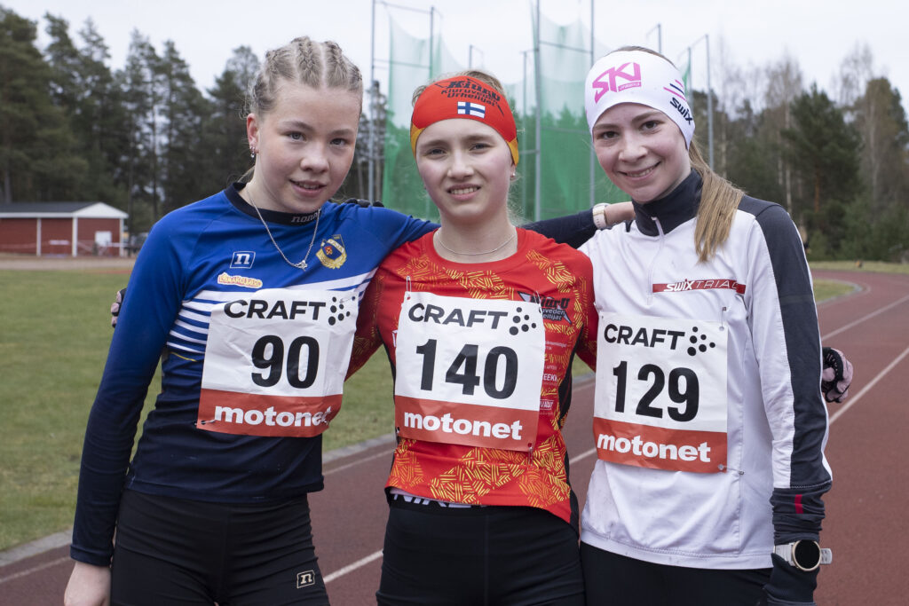 Joensuun Katajan Noora Hukka ja Limingan Niittomiesten Kaisla Passlin kirittivät hyvin toisiaan. Se toi Hukalle 17-vuotisten mestaruuden ajalla 35.56, ja Passlin oli paras 19-vuotisissa ajalla 36.19.