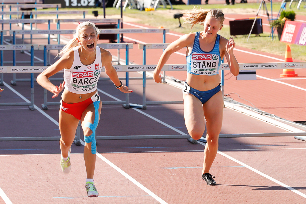 Sonja Stång pinkoi tuulispäänä naisten 100 metrin aitajuoksussa ja oli kuudes ajalla 13,78, vaikka törmäsi pahoin heti ensimmäiseen aitaan.