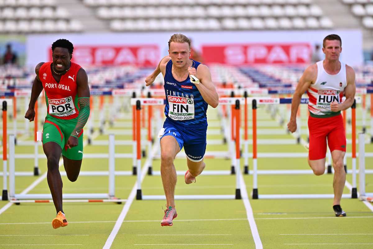 Santeri Kuusiniemi voitti Madridissa 110 metrin aitojen B-erän ajalla 13,83, joka syntyi 1,3 metriä sekunnissa puhkuneessa vastatuulessa.