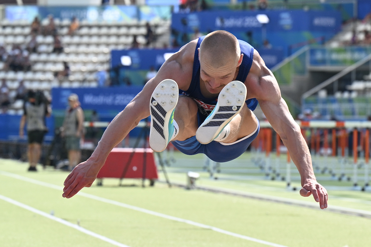 Kalle Salminen ponnisti helteisellä pituushyppypaikalla kevyessä myötätuulessa nousujohtoiset tulokset 765, 769 ja 773. Se riitti 10. sijaan, mikä tarkoitti kilpailun typistymistä kolmeen kierrokseen. Salmiselle Madridin kilpailu oli ulkoratakauden kolmas