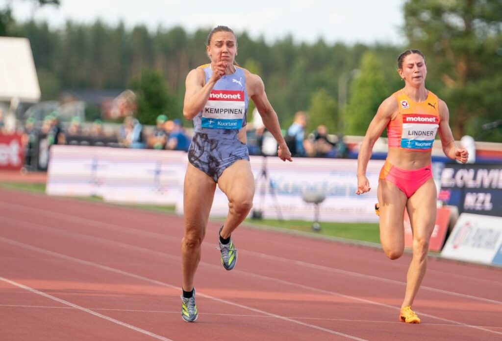 Lotta Kemppinen viihtyy varmasti Kuortaneen radalla, jossa hän pinkoi vuosi sitten 100 metrin ennätyksensä 11,20. Nyt hän saa vastaansa Liberian Thelma Daviesin, joka oli Turussa finaalin kolmas kauden parhaallaan 11,03.