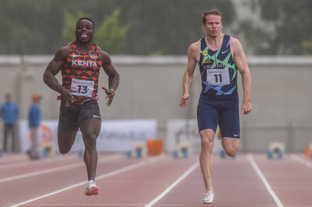 Miesten 100 metrillä Kenian Ferdinand Omurwa pyyhälsi alkuerässä 10,16 ja loppukilpailussa 10,06. Samuel Purola juoksi samassa alkuerässä 3,1 metriä sekunnissa puhaltaneeseen myötätuuleen 10,39, mutta jätti toisen juoksun koleassa säässä väliin. Finaalissa myötätuulta oli 2,7 metriä sekunnissa.