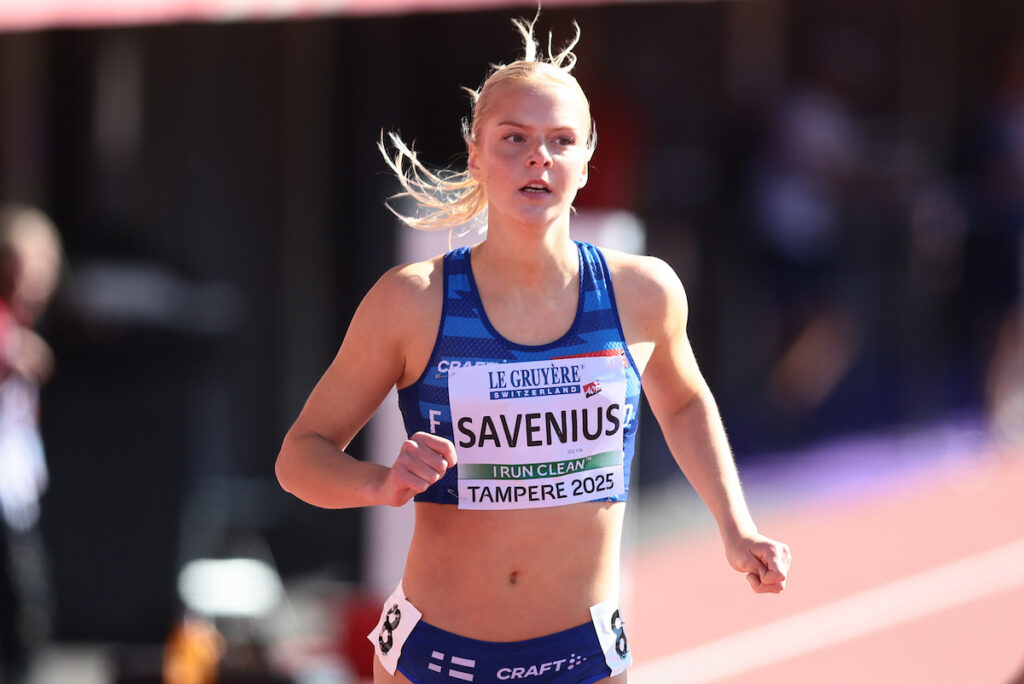 Emmi Savenius juoksi naisten 400 metrin alkuerissä uuden ennätyksensä 55,04 ja eteni aikavertailusta välieriin. Entinen ennätys parani 0,12 sekuntia. Savenius oli erässään kuudes ja kokonaiskilpailun 20:s.