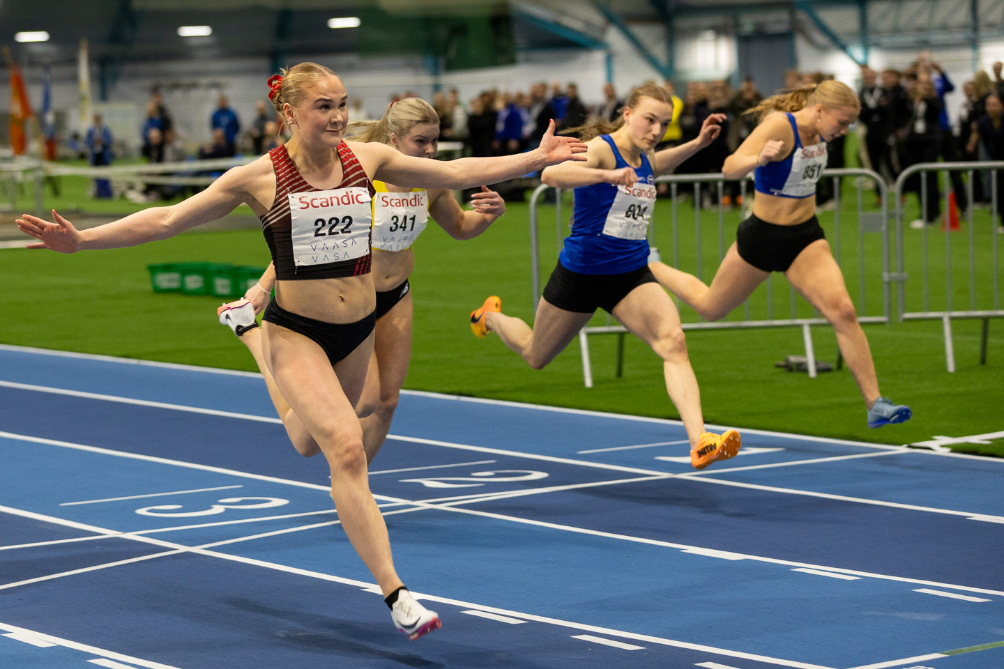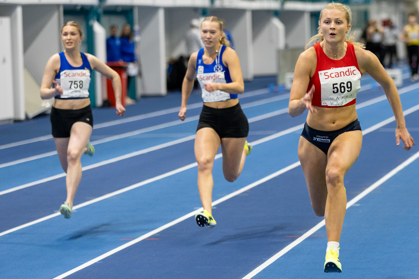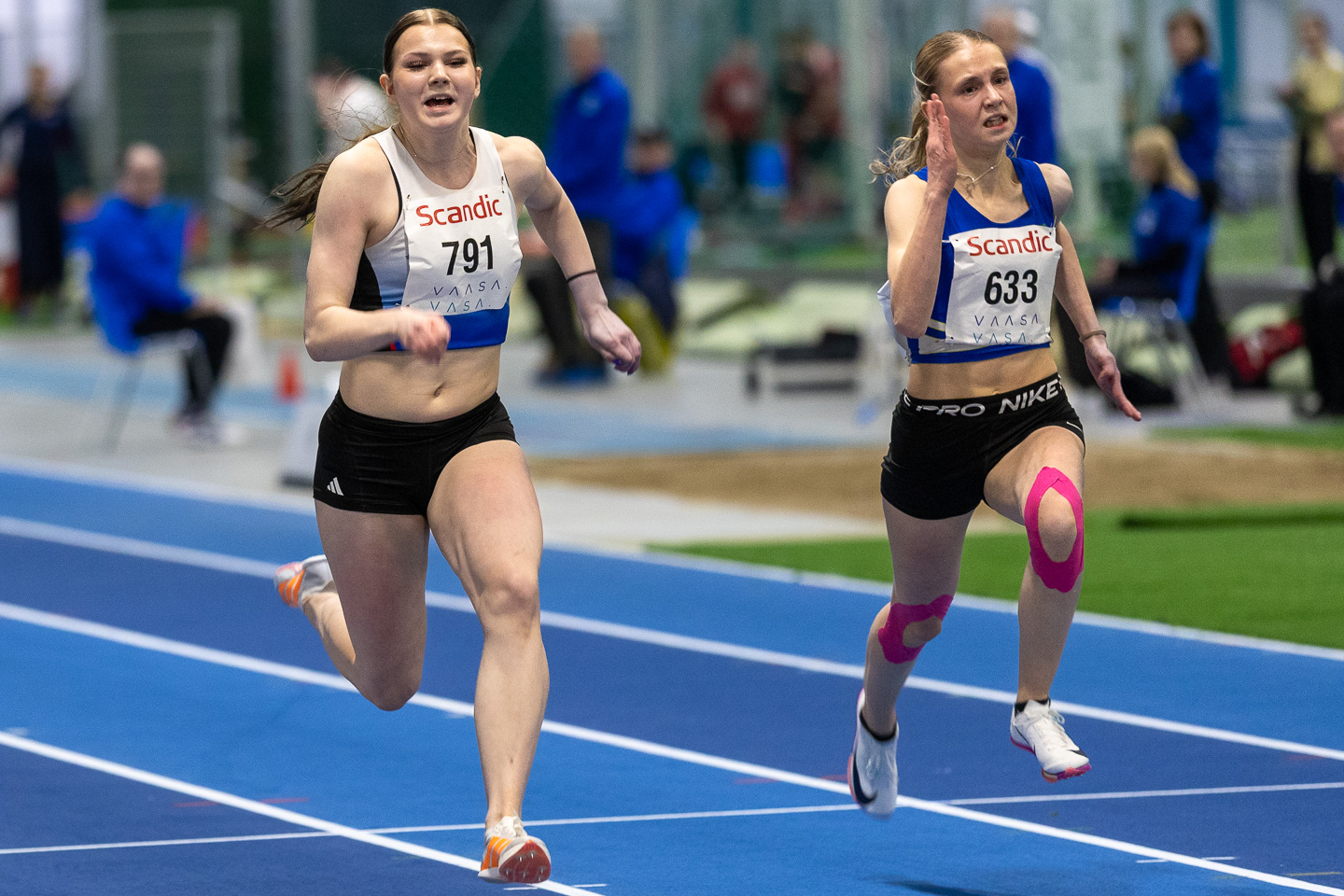 Noormarkun Nopsan Aada-Olivia Oksanen ja IF Drottin Priscilla Boateng olivat 22-vuotiaiden 60 metrillä toinen ja kolmas ennätyksillään 7,52 ja 7,57.