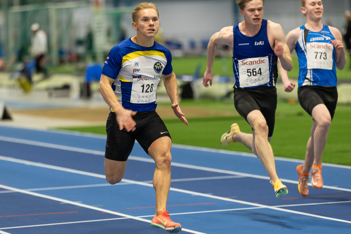 Espoon Tapioiden Alexander Mitchell oli 22-vuotiaiden 60 metrillä toinen ennätyksellään 6,86. Lappeenrannan Urheilu-Miesten Kasperi Vehmaa oli kolmas kauden parhaallaan 6,89.