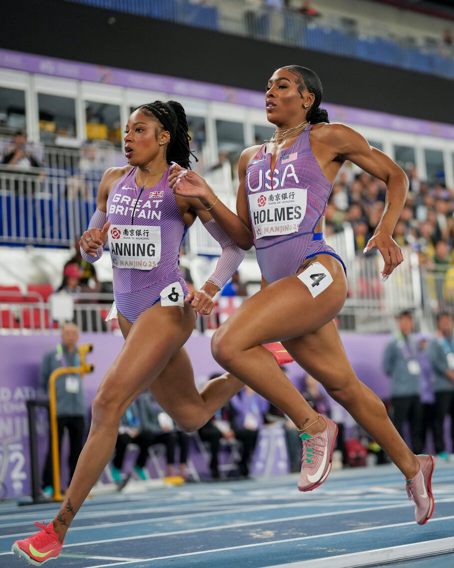 Juoksuradalla Yhdysvaltain Grant Holloway jatkoi pitkää tappiottomien juoksujensa sarjaa ja voitti 60 metrin aitojen MM-hallitittelin kolmatta kertaa. Holloway vei finaalin ajalla 7,42. Ranskan Wilhem Belocian oli toinen ajalla 7,54 ja Kiinan Liu Junxi kolmas ajalla 7,55.