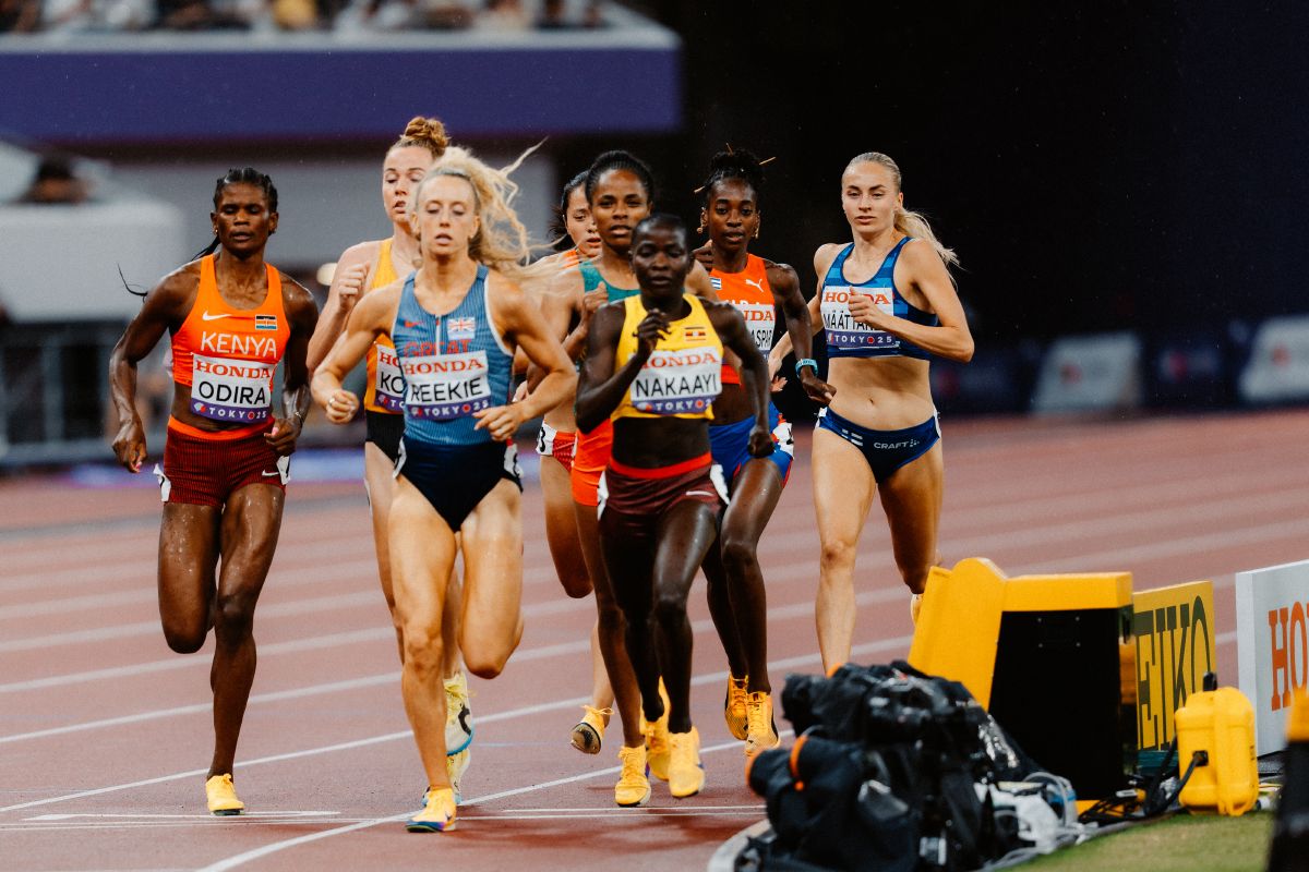 MM-kisojen 800 metrin alkuerissä pidettiin rivakkaa vauhtia. Aikavertailusta jatkoon vaadittiin 1.59,32.