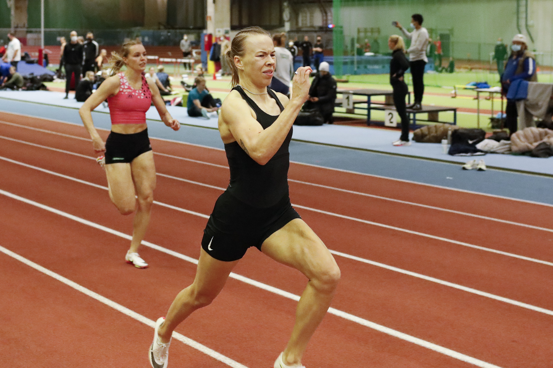 – Se oli sellainen karstat pois koneesta -tyyppinen juoksu. En kuitenkaan pystynyt rentouttamaan juoksua, kun tuntui, että koko ajan on kaarre edessä, kun olen tottunut Pajulahti-hallin pidemmällä radalla harjoittelemaan, Mononen sanoi.