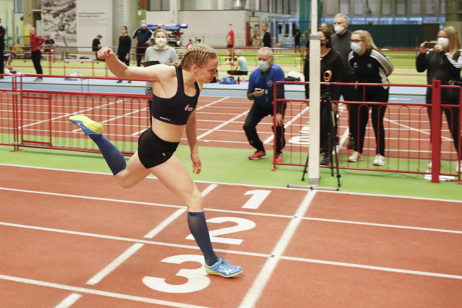 Jyväskylän Kenttäurheilijoiden Aino Pulkkinen oli nopein naisten 200 metrillä ajalla 24,01, joka jää vain kolme sekunnin sadasosaa hänen ennätyksestään. Aika talven on kotimainen kärkitulos.