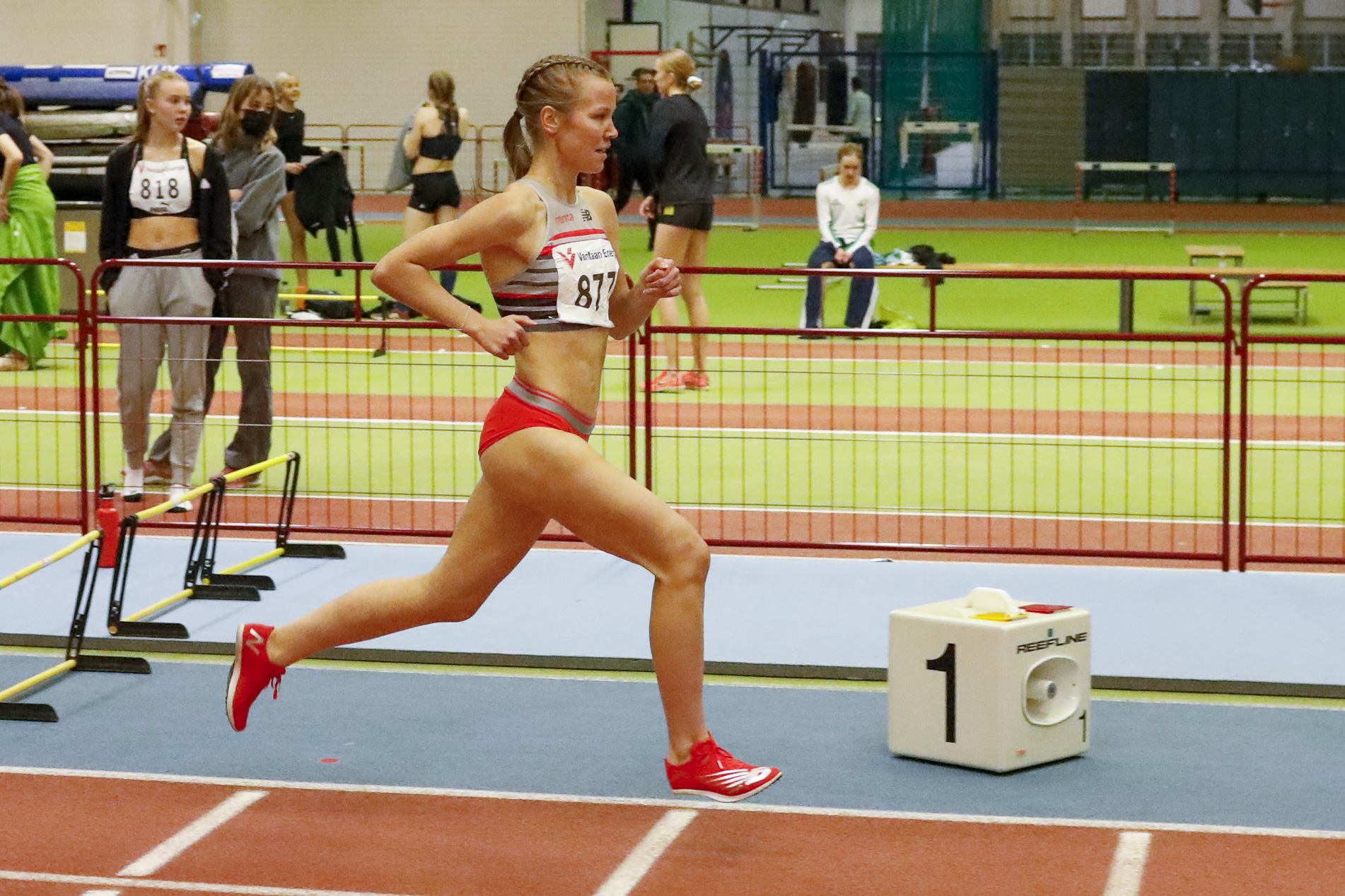 Naisten 60 metrin aitajuoksun voitti Helsingin Kisa-Veikkojen Anni Siirtola ajalla 8,42.