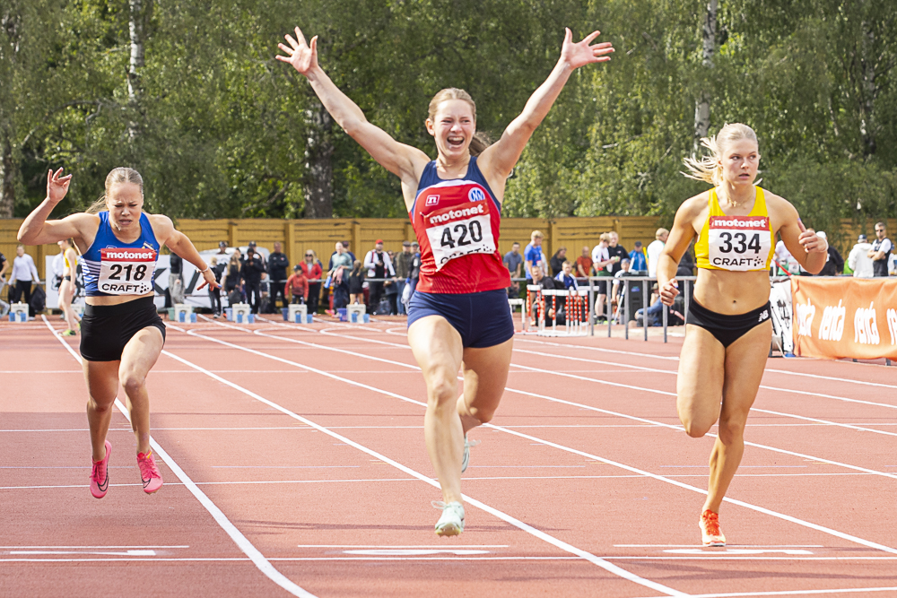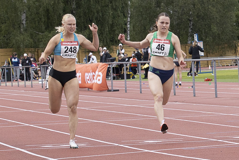 Alku- ja välierien nopein Jenni Väänänen Lahden Ahkerasta oli 19-vuotiaiden finaalin toinen ajalla 11,94 ja Kälviän Tarmon Vanessa Store kolmas ajalla 12,11. Loisto-olosuhteissa Väänänenkin paransi ennätystään 0,16 sekuntia ja Store peräti 0,32 sekuntia.