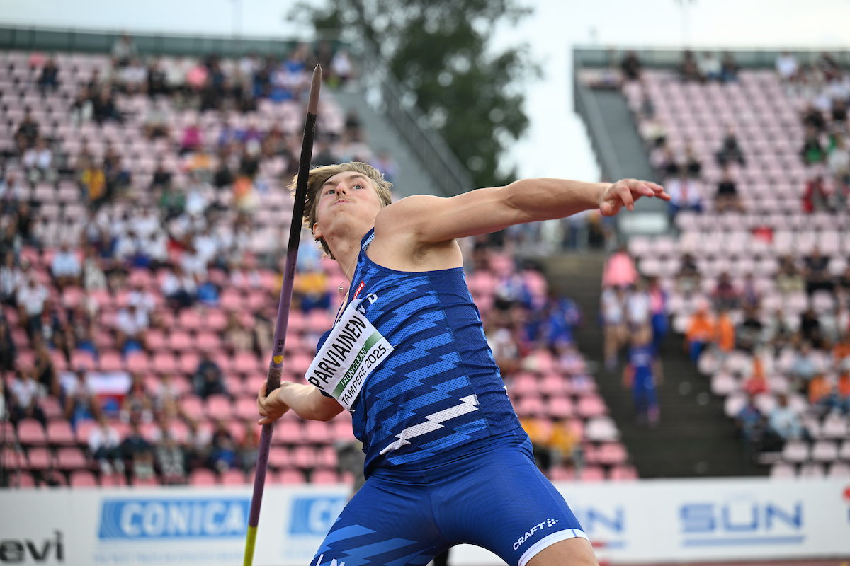 Parviainen heitti jo kolme vuotta sitten 16-vuotiaana 100 grammaa kevyempää keihästä poikien Suomen ennätyksen 84,52. Miesten keihästä hän on tänä kesänä kiskaissut 74,72.