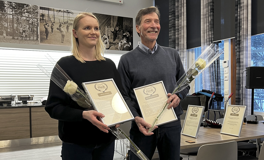 Naisten seiväshypyn Suomessa kansainväliselle tasolle nostanut Minna Alitalo (o.s. Nikkanen) ja olympiavuoden 1976 Suomen mestari ja seiväshyppyä monin tavoin edistänyt Tapani Haapakoski nimettiin suomalaisen seiväshypyn Hall of Fame -kunniakerhon jäseniksi Liikuntakeskus Pajulahdessa Lahden Nastolassa lauantaina.