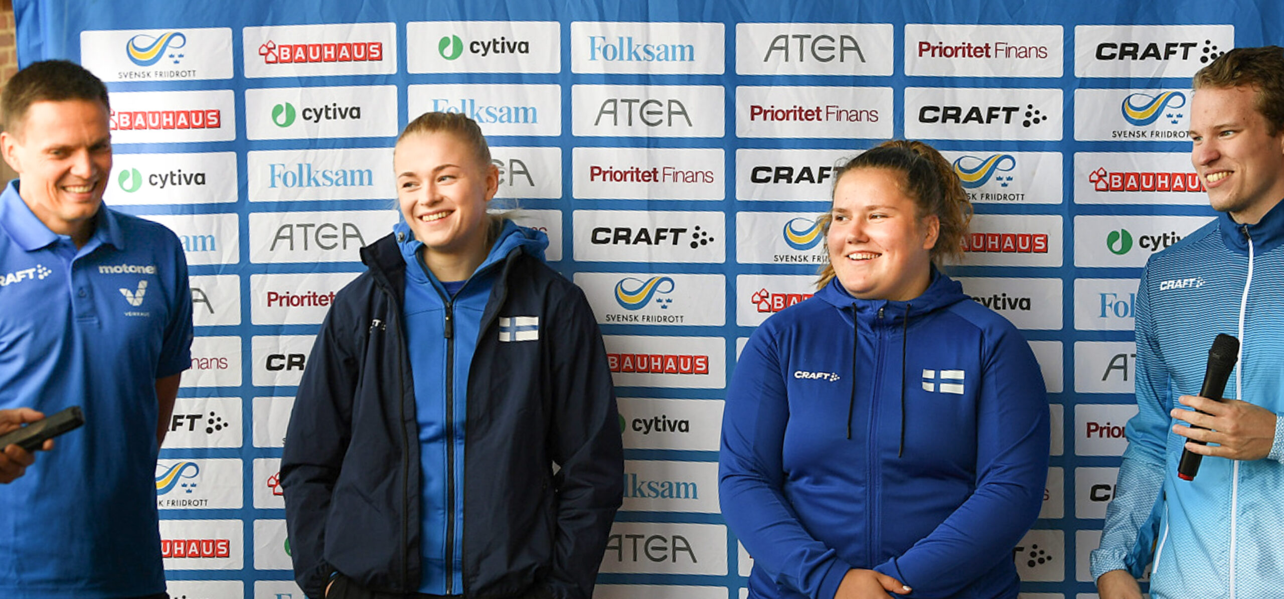 Wilma Murto, Samuel Purola ja Silja Kosonen vakuuttivat Tukholmassa Ruotsin yleisurheiluliiton mediatilaisuudessa, että tuloksen tekoon riittää puhtia vielä lauantaina ja sunnuntaina käytävässä Ruotsi-ottelussa.