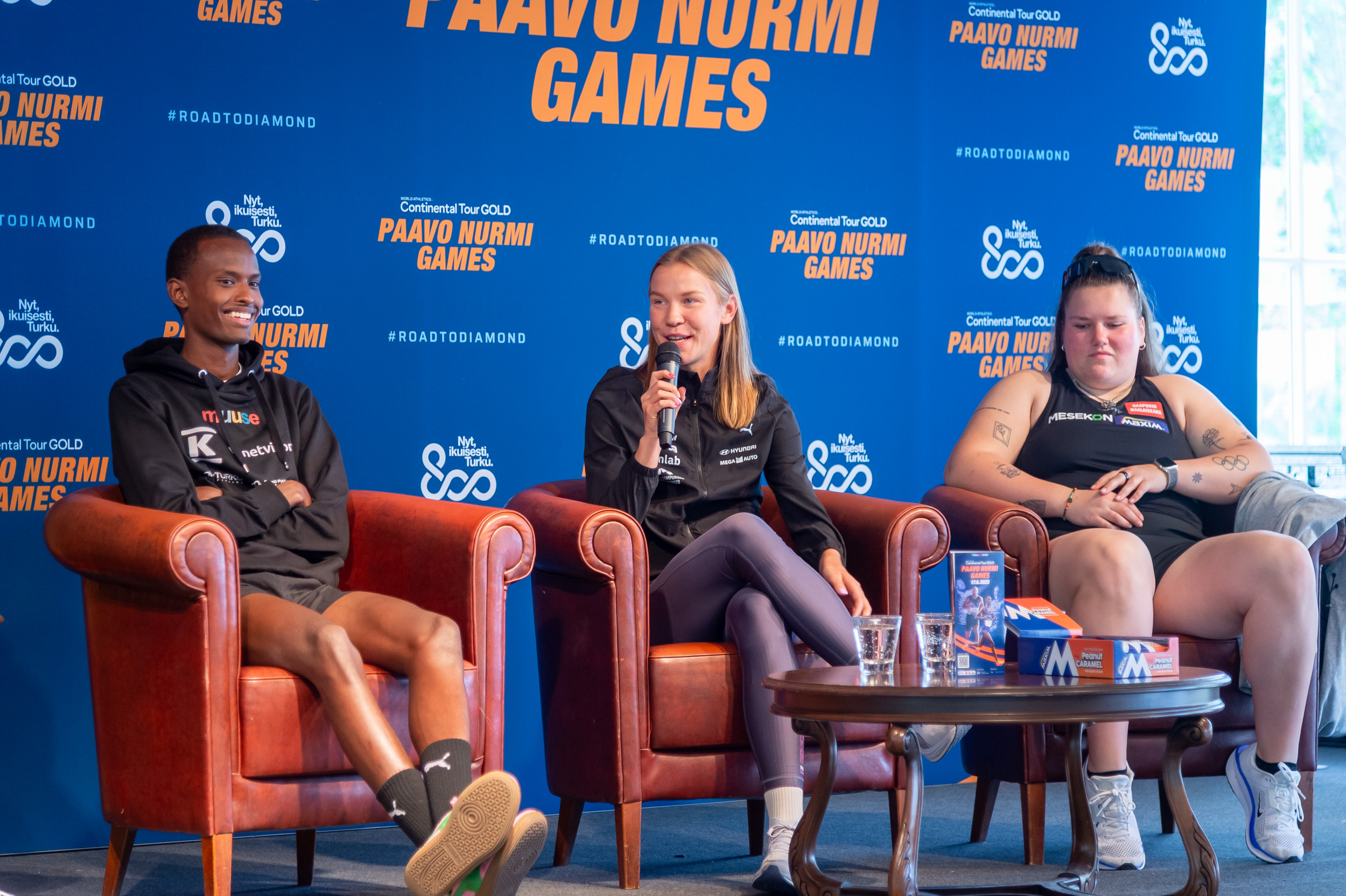 Paavo Nurmi Gamesin (tiistaina 17. kesäkuuta) tunnelmaa nostatettiin aattopäivänä mediatilaisuuksissa Naantalin Kaivohuoneella. Suomalaisista esiintyivät kestävyysjuoksijat Mustafe Muuse, Ilona Mononen ja Joonas Rinne sekä moukarinheittäjä Silja Kosonen.
