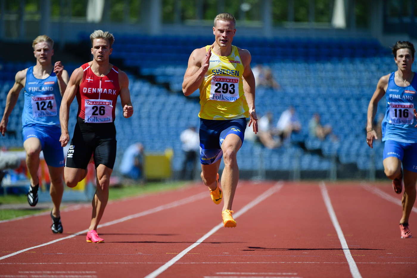 4×100 m: 1) Ruotsi 39,40 (Jean-Christian Zirignon, Zion Eriksson, Linus Pihl, Desmond Rogo), 2) Suomi 39,64 (Valtteri Louko, Riku Illukka, Oskari Lehtonen, Niilo Mustalahti), 3) Tanska 40,04 (Steffen Udengård Knudsen, Emil Frände, Jakob Hvorup, Emil Mader Kjär) … Ruotsi II keskeytti (Simon Plesse, Viktor Thor, William Thor, Emil Johansson).