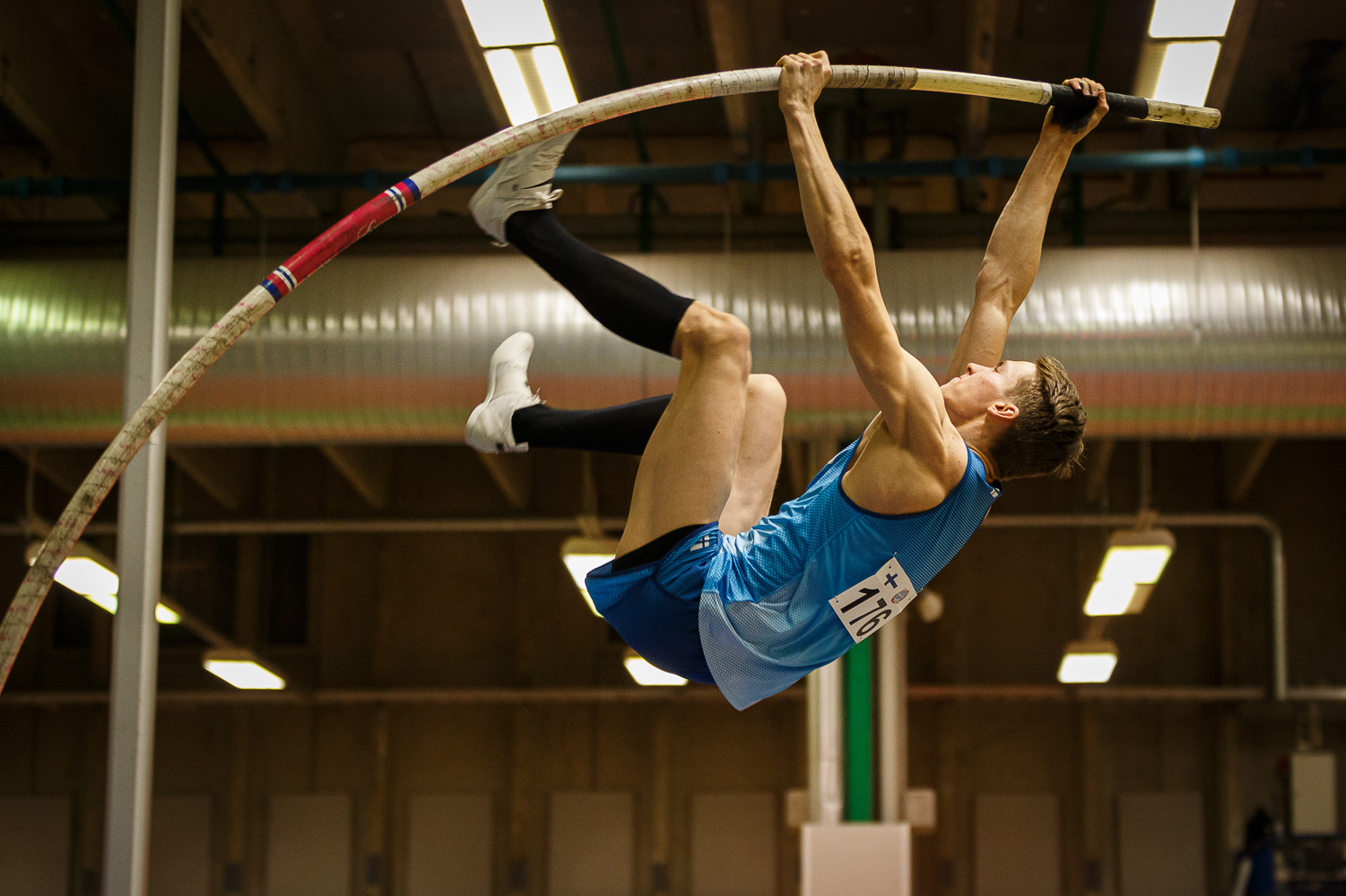 Suomeen tuli Liikuntamyllyssä voitto myös miesten seiväshypyssä. Yllätysmestari oli Alajärven Ankkureiden Mikko Paavola tuloksella 530.