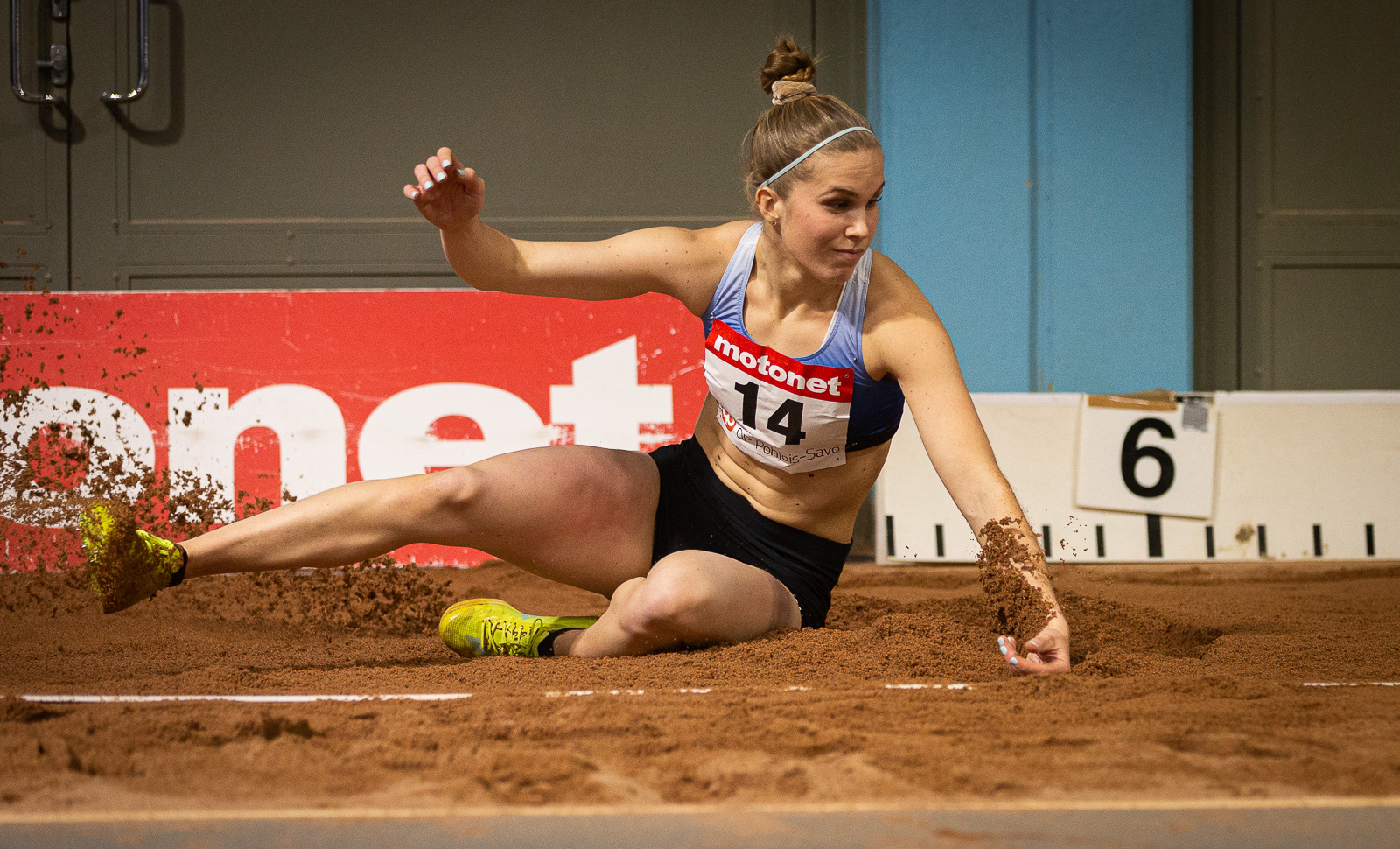 Kolmiloikkaajana kuusi mitalia vuosien 2018–2021 SM-kilpailuissa voittanut Emma Pullola ylsi Kuopiohallissa sivulajinsa pituushypyn mestariksi halliennätyksellään 613. Pullola on entuudestaan kolmiloikan hallimestari vuodelta 2019.