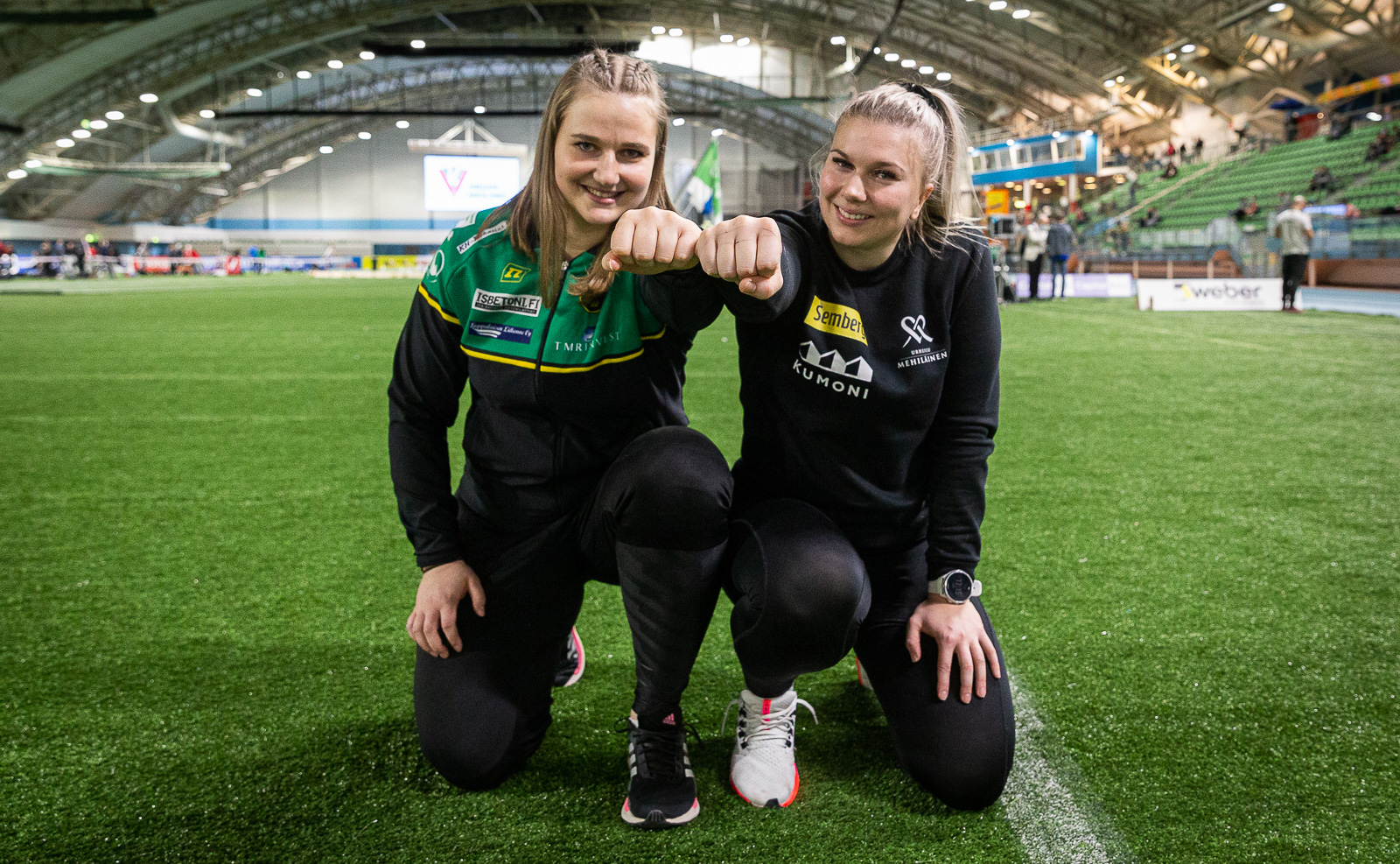 Naisten seiväshypyssä Varkauden Kenttä-Veikkojen Laura Ollikainen paransi halliennätystään ja kiilasi tänä talvena hyvin hypänneiden Esbo IF:n Saga ja Silja Anderssonin väliin toiseksi. Ollikainen hävisi Saga Anderssonille tasatuloksella 418.