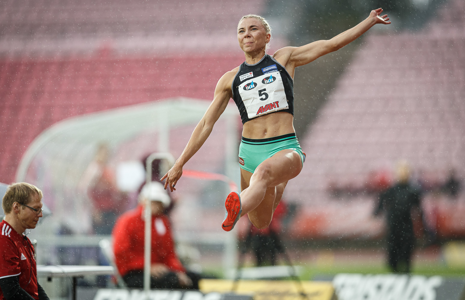 Helmikuisen takareisivamman kuntouttanut pituushyppääjä Taika Koilahti oli kesän ensimmäisessä kilpailussaan toinen. Hän ponnisti tuulisessa sadekelissä 603. Kilpailun voitti Sini Sanaslahti, joka liiteli 2,3 metriä sekunnissa puhaltaneessa myötäisessä 615.